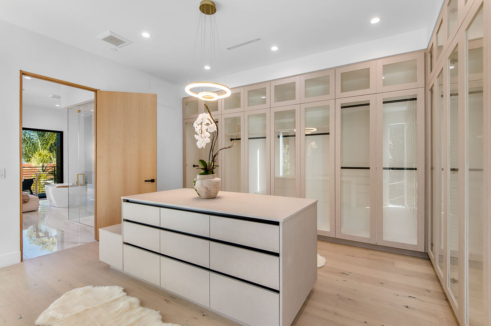 To create that absolute connection to nature and visual lightness, neutral colors and natural materials for custom millwork in the kitchen and bathrooms, etc., were used all throughout the home.