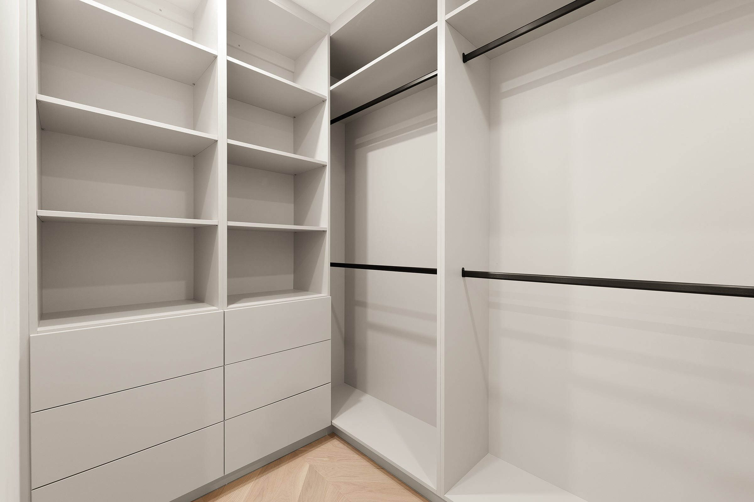 Each bedroom is designed as a personal retreat, blending warmth and minimalism. The primary suite offers access to a private terrace, a custom-built wardrobe wall, and an ensuite bath finished in natural stone and soft lighting.
